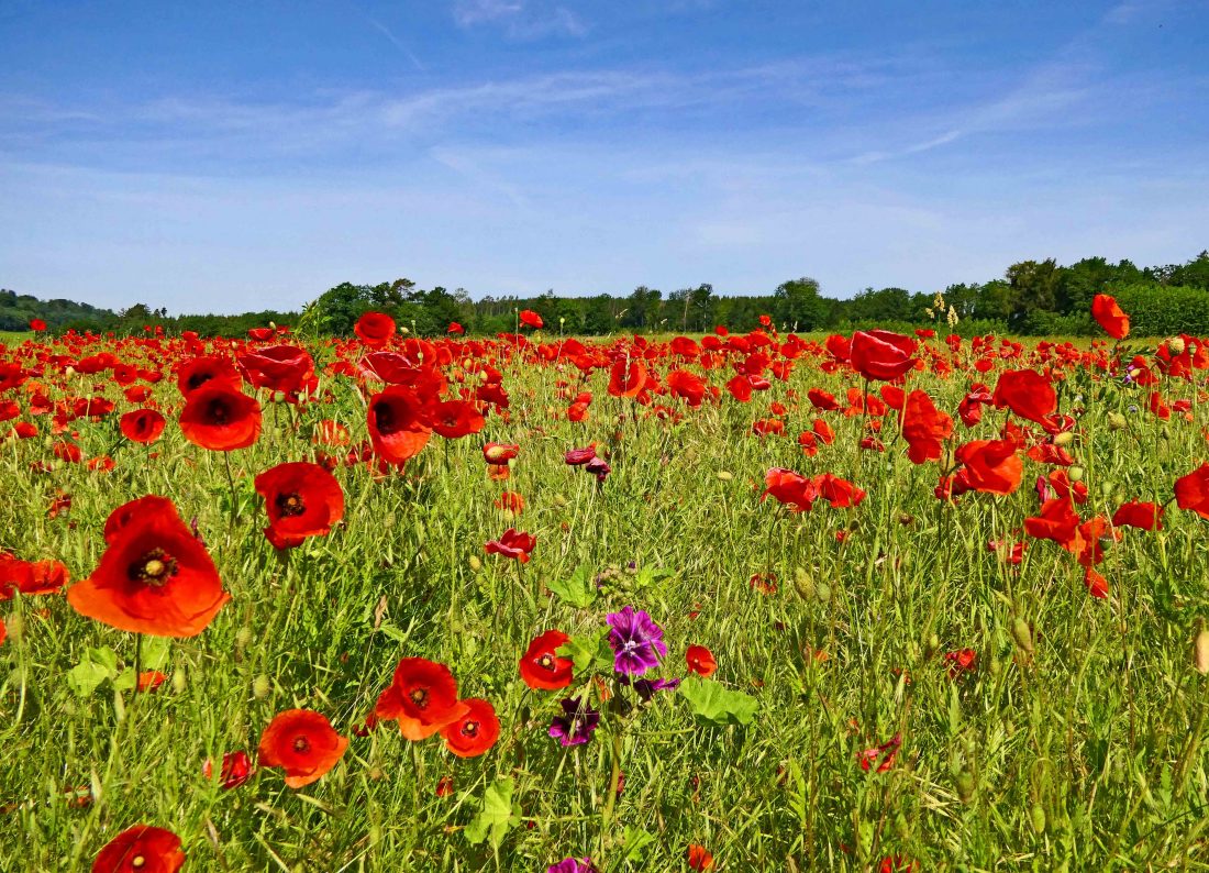 Title: Rotes Blumenmeer vor blauem Himmel ( Wildacker mit Mohn )